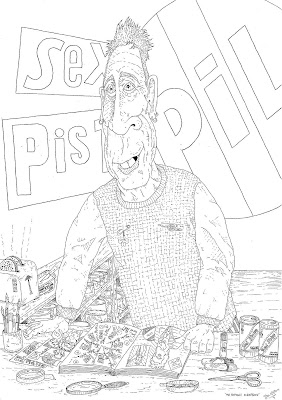 I did these for Billy Braggs Jail Guitar Doors charity project - The big one is Billy Bragg and Mick Jones and the other is Chris Shiflett from the Foo Fighters - he particularly liked his and was a bit astounded I'd even got his tattoos right. Both pictures got raffled at the premier of Billy Braggs Jail Guitar Doors film in Camden - 2nd Oct 2009 I think it was. Oh - I've found a picture from it that the photographer Pete Stevens sent me - I'm sure he wont mind me posting it up here.